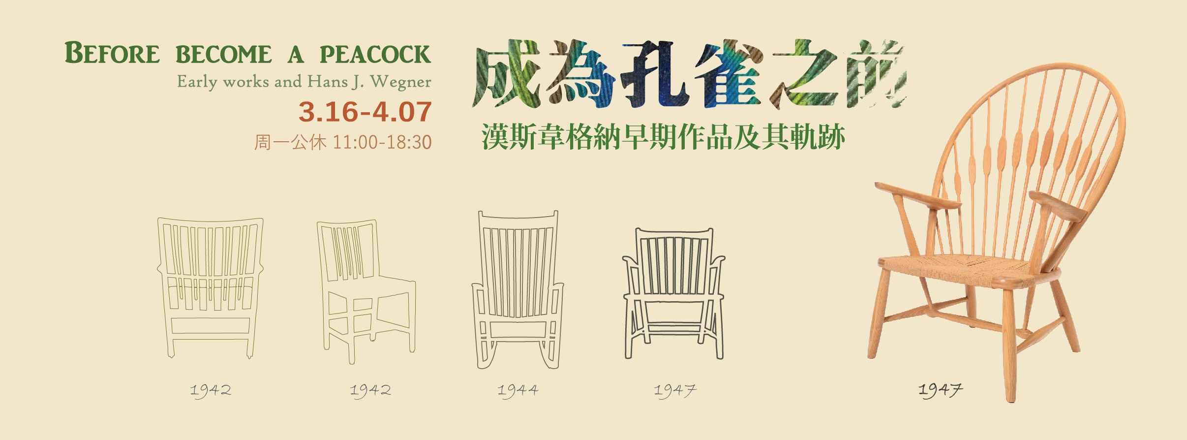 1947年,漢斯韋格納(Hans J. Wegner)發表了一張帶有溫莎風格的休閒椅,相傳當芬尤(Finn Juhl)看到了這件作品,即稱呼它如孔雀一般,這張椅子也因此得名。於此之後,韋格納也如同孔雀開屏一般,接二連三的設計出絢爛精彩的作品。但正如所有的重要設計師的成長之路,在成為大師之前,韋格納一步一步地將其設計語彙不斷精煉、結構也逐漸完善,這都可以在他早期的作品中看到證明。