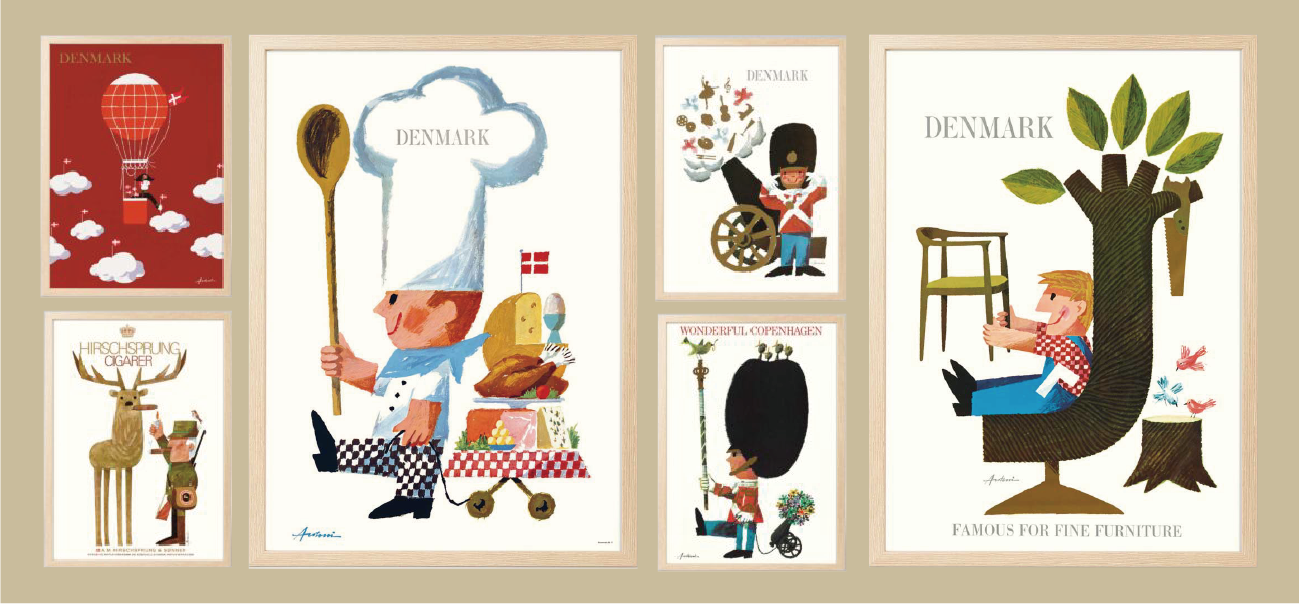 Antoni被稱為"丹麥的國家插畫家",在1965年為丹麥外交部和哥本哈根旅遊協會設計的一系列海報,他以小美人魚、家具、蒂沃利花園、小騎兵和美食料理等為主題,他充滿童趣的繪畫風格、繽紛溫暖的色彩,成功的向世界介紹了丹麥的文化。