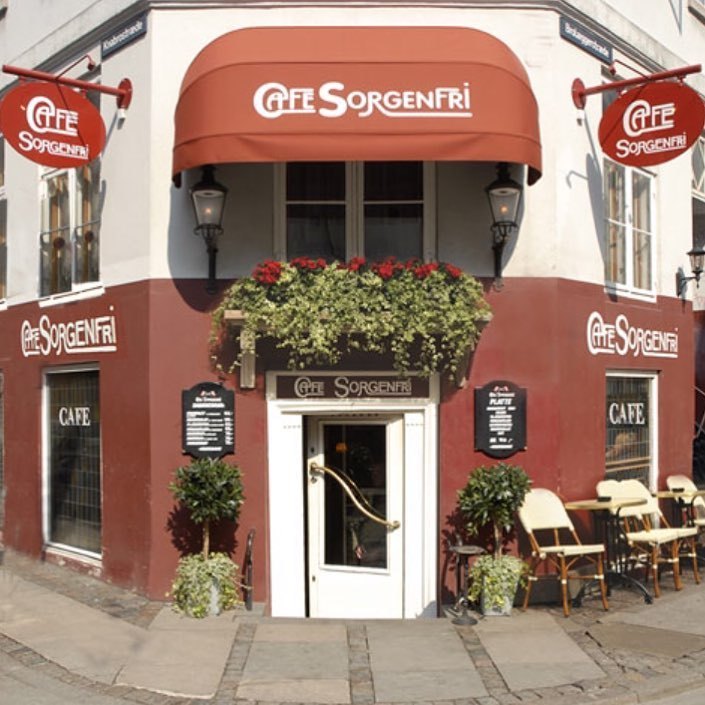 1882年之前在這棟於1975年因哥本哈根大火重建的老建物就由Botilde Marie Madsen在這個地下室經營一家酒吧,於1929年改為Café Sorgenfri的咖啡館,這間有90多年歷史的咖啡館坐落於充滿歷史感1796年的老屋中,空間保留了溫暖放鬆的傳統的木製內裝,牆上滿佈著老油畫和照片,Sorgenfri的意思是沒有悲傷。販售有丹麥傳統開放式三明治(smørrebrød) ,肉丸和烤豬肉等。
