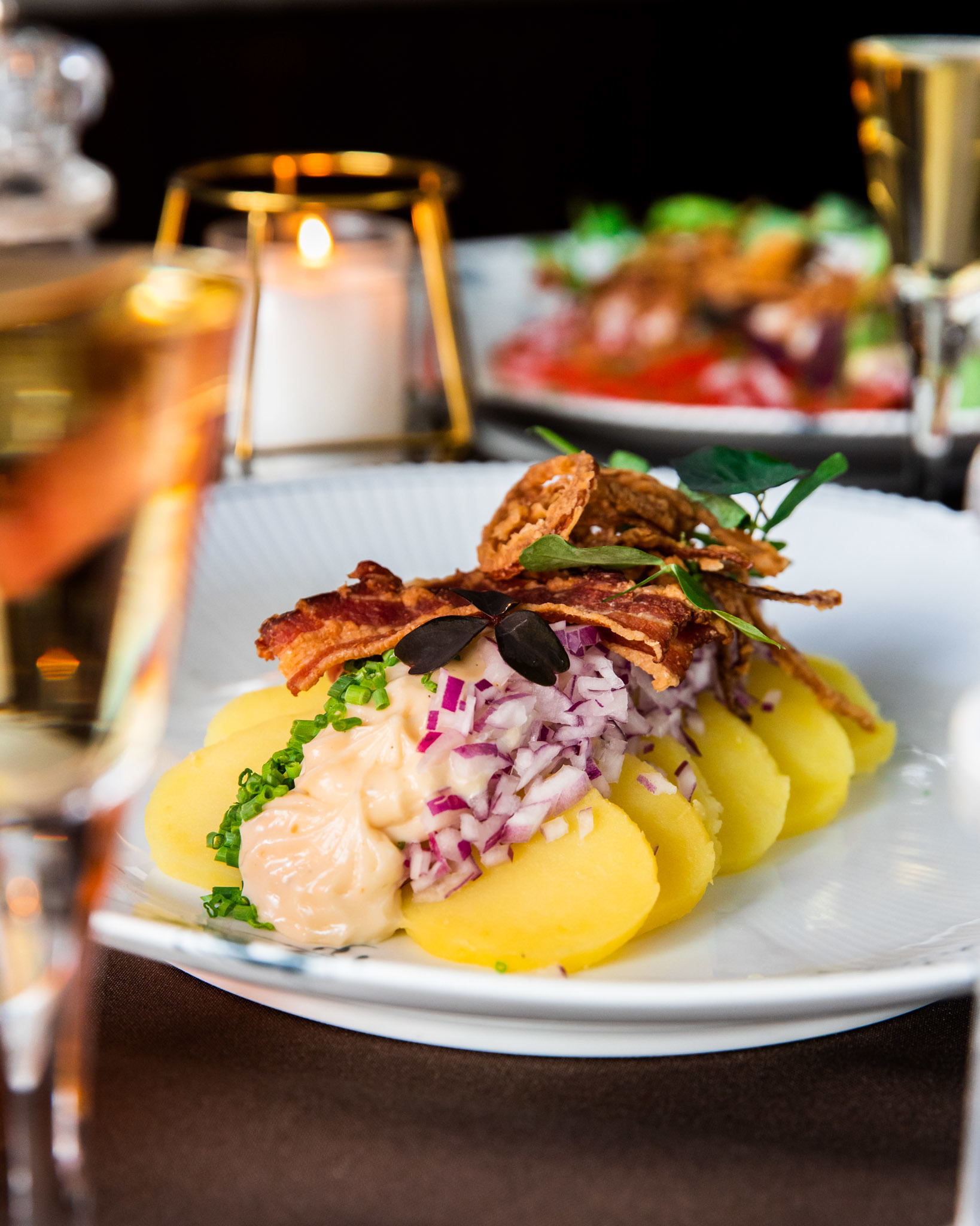 *mobilia上推薦加了水煮馬鈴薯、蛋黃醬、洋蔥、蔥和加了以雪莉酒醃製的鯡魚片的開放式三明治。