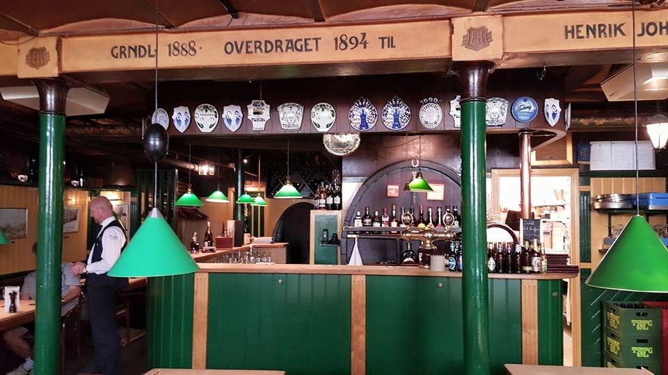 成立於1723年,新國王廣場Kongens Nytorv旁,Kongens Nytorv地鐵站對面,即將滿300年的半地下室的酒吧,保持著舊時的裝飾木桌、斑駁的木製裝潢、彩色窗花,老收銀機、老照片滿滿的歷史痕跡,除了供應酒類也提供簡單的丹麥食物。有戶外的座位,天氣好時坐在廣場看著人來人往,一邊是古典的丹麥皇家劇院,一邊是丹麥龍頭百貨公司Magasin Du Nord。