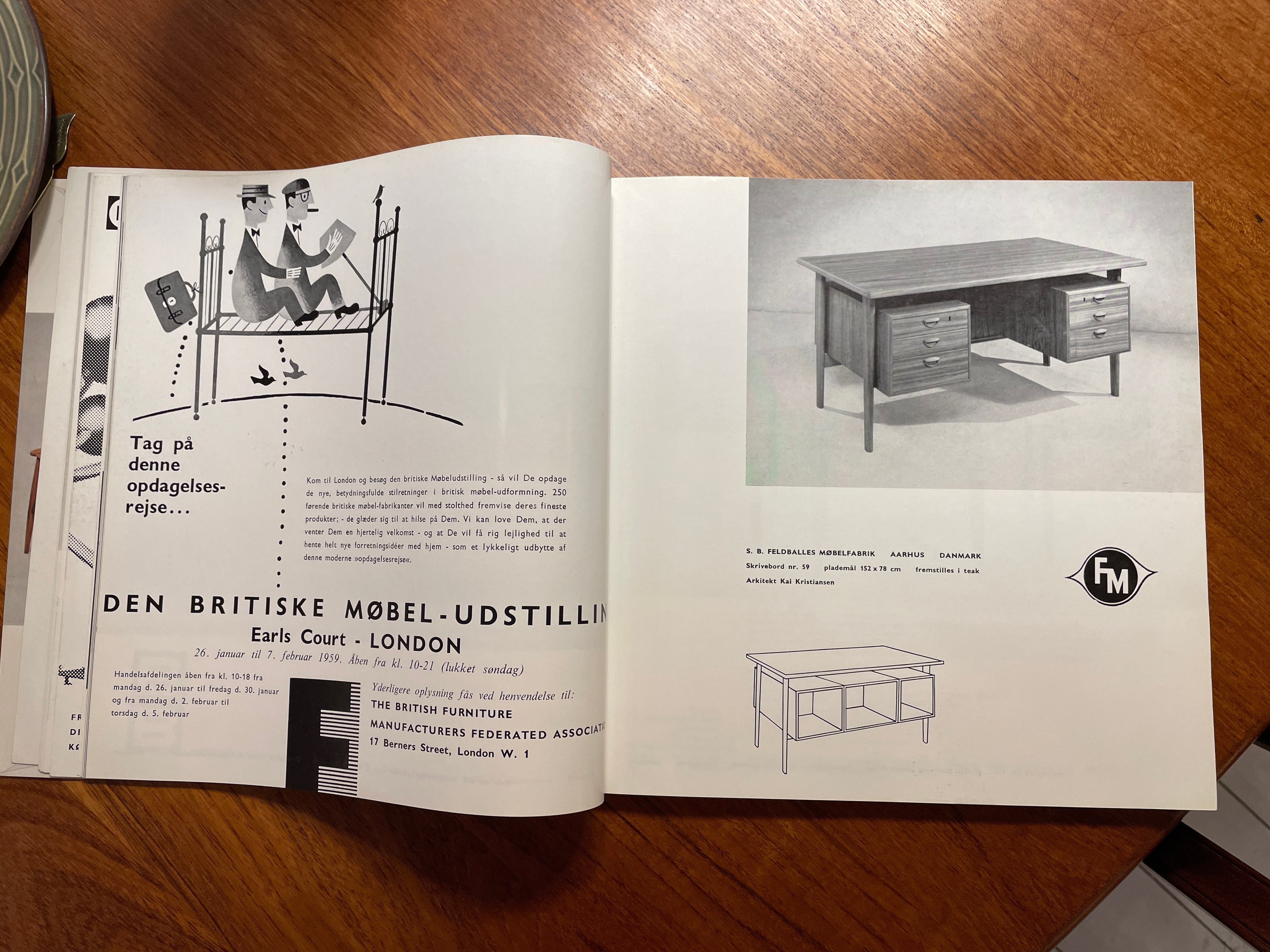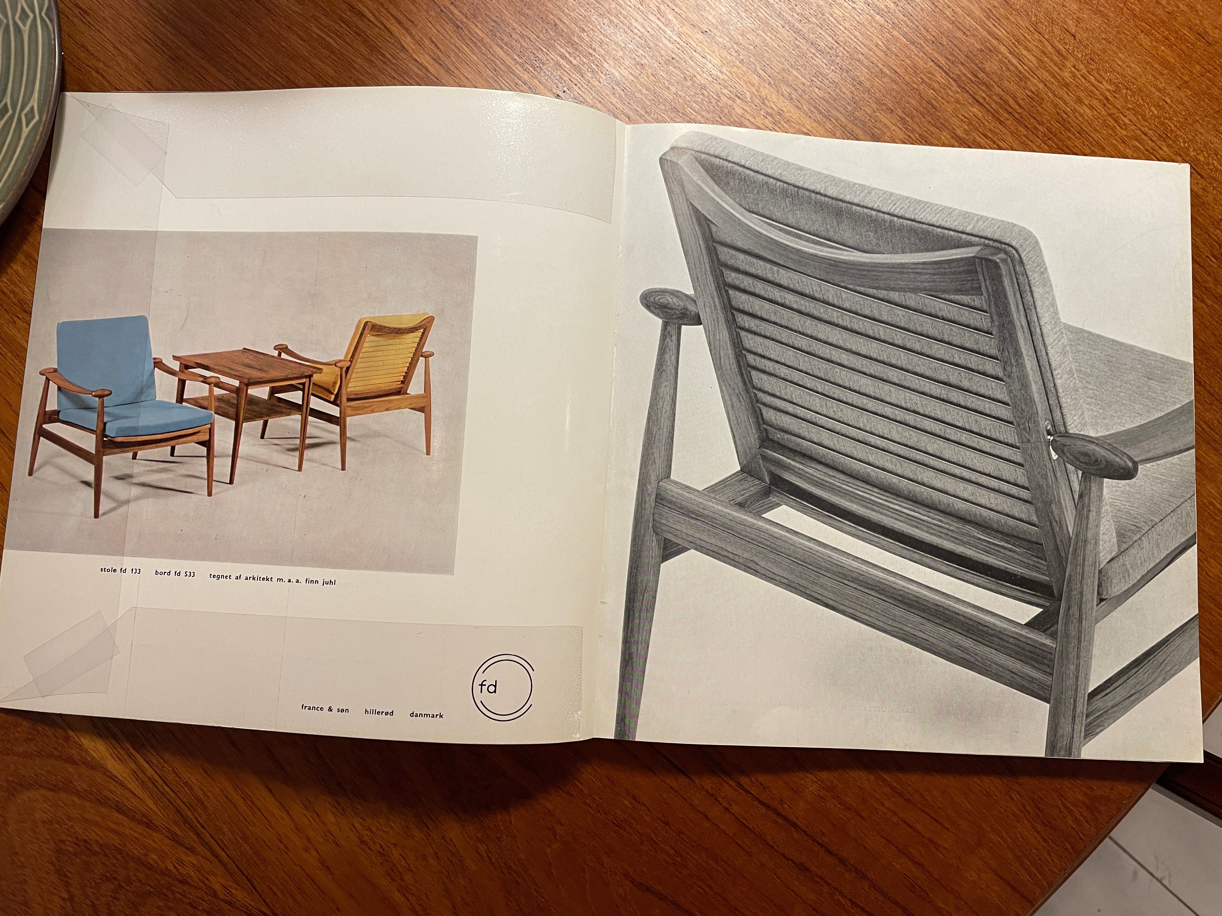 封面內頁及第一頁廣告的廣告主是France & søn,以Finn Juhl的FD133(鏟子椅)及相伴的FD533邊桌吸引人,天藍和赭黃色的椅面在彩色頁上明顯對比,凸顯出Finn Juhl善於使用色彩的專長,右頁是FD133的背影,表現出椅子優美的節構和柚木細緻的紋理。