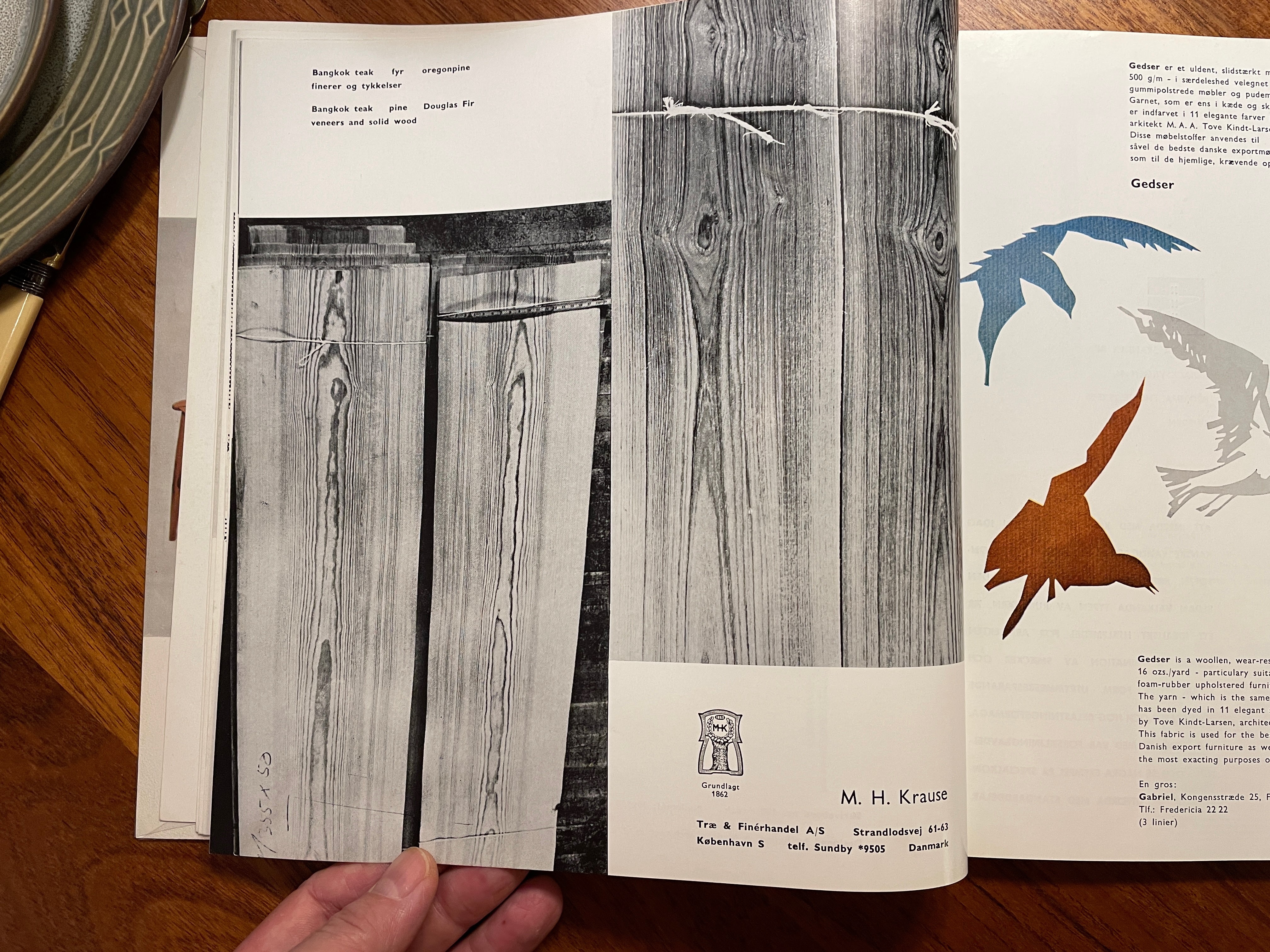 一個木材商廣告揭示了當時使用的柚木產地,廣告內容清楚標示曼谷柚木,也驗證了此時丹麥家具使用的主要柚木來源自泰國。