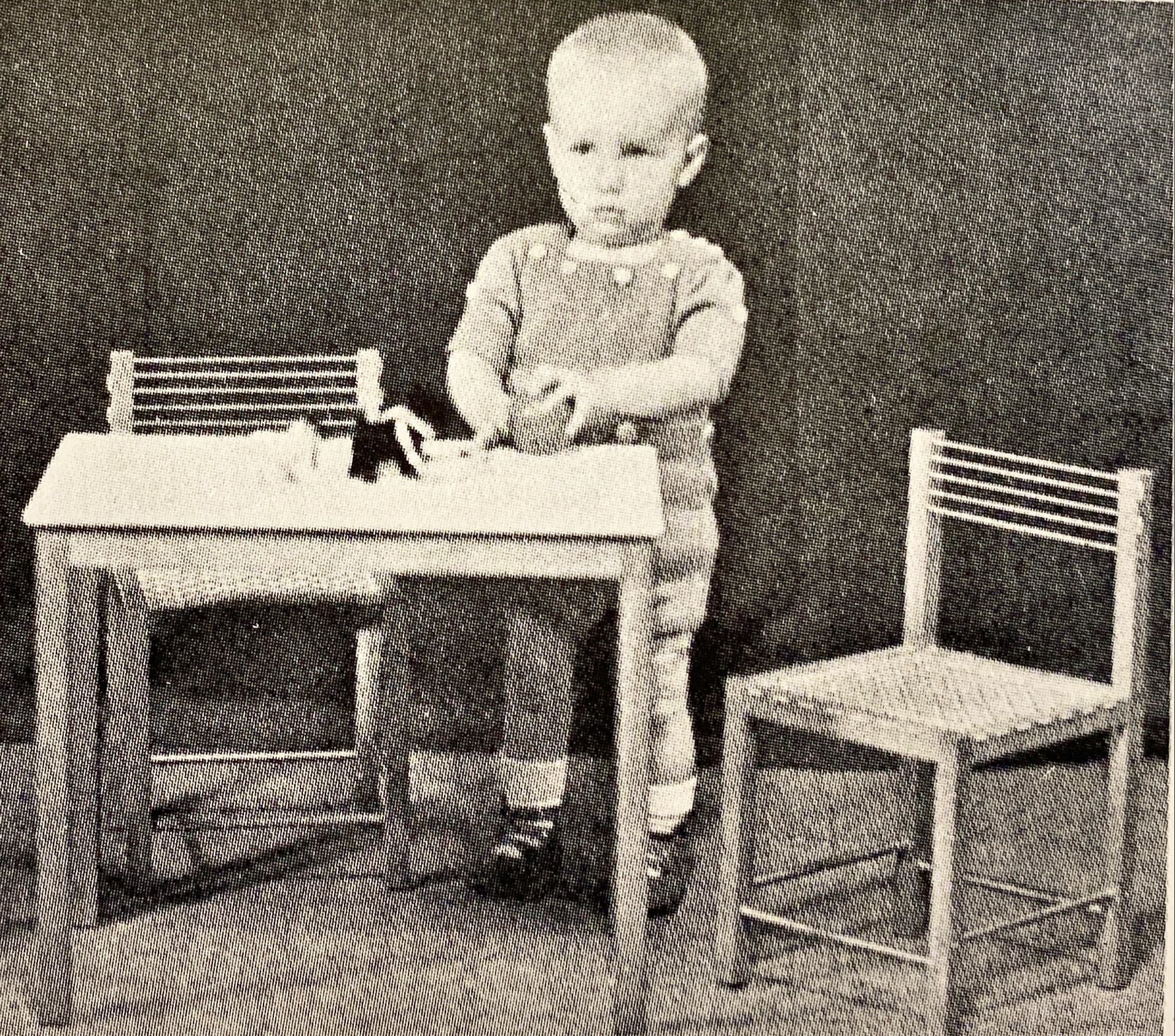 Furniture in beech and teak for children and adults.