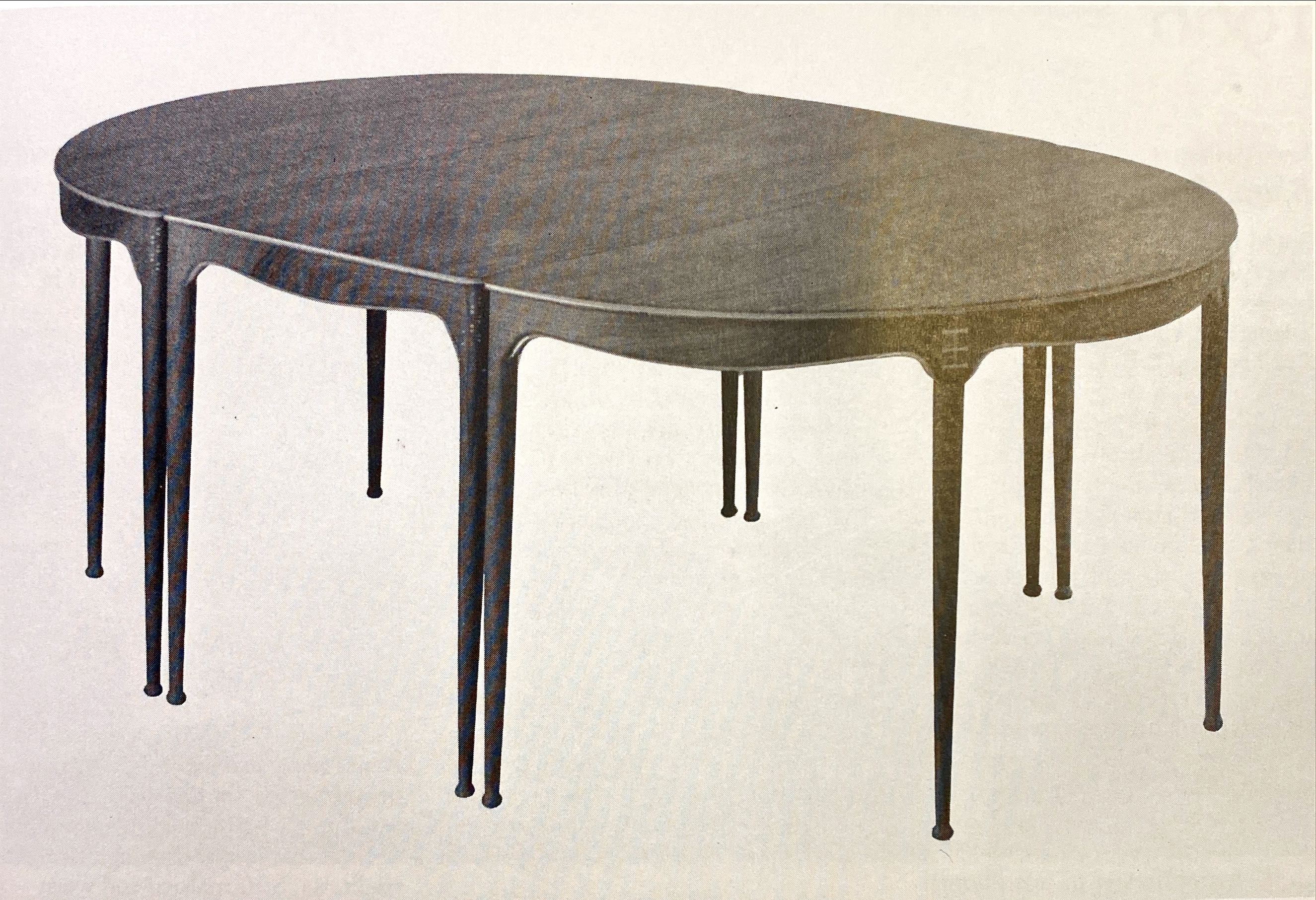 2015年於Phillips倫敦拍賣的餐桌,是來自1952年建築師Finn Juhl為木材商M. Aubertin 夫婦所設計的別墅,這間 Villa Aubertin 別墅位於西蘭島西北方的Rosnæs,是Finn Juhl設計為數不多的建築之一,Finn Juhl設計了別墅內的硬體設備與軟裝、家具,用餐區域的餐桌則是由Peder Moos所設計的。