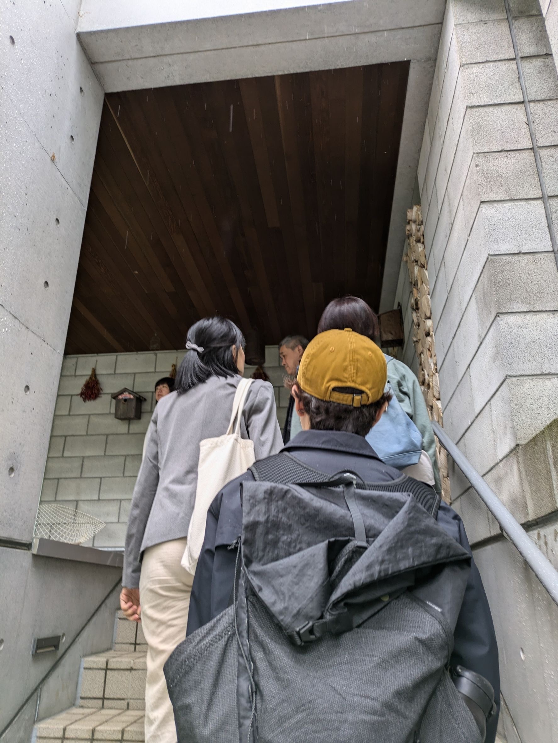 終於到了要去拜訪織田教授的這一天了!那天早上我是這麼想著的!東川町的天空不時降下一陣一陣的雨,有點像忐忑的心情。與協助聯繫的裕子小姐約在Centpure(東川町複合交流施設),隨著約定時間接近,我一邊看著展覽,一邊想著要向織田教授請教哪些問題。日文對我是陌生的,為了讓會談更加順利,特別請旅居東川町多年的鄧小姐協助翻譯。裕子小姐如約定時間抵達,簡單交談後示意我們跟車前往,短短十分鐘車程,在一個滿是樹林的山丘之上,駛入一條小路之後,我們一行8人抵達目的地。