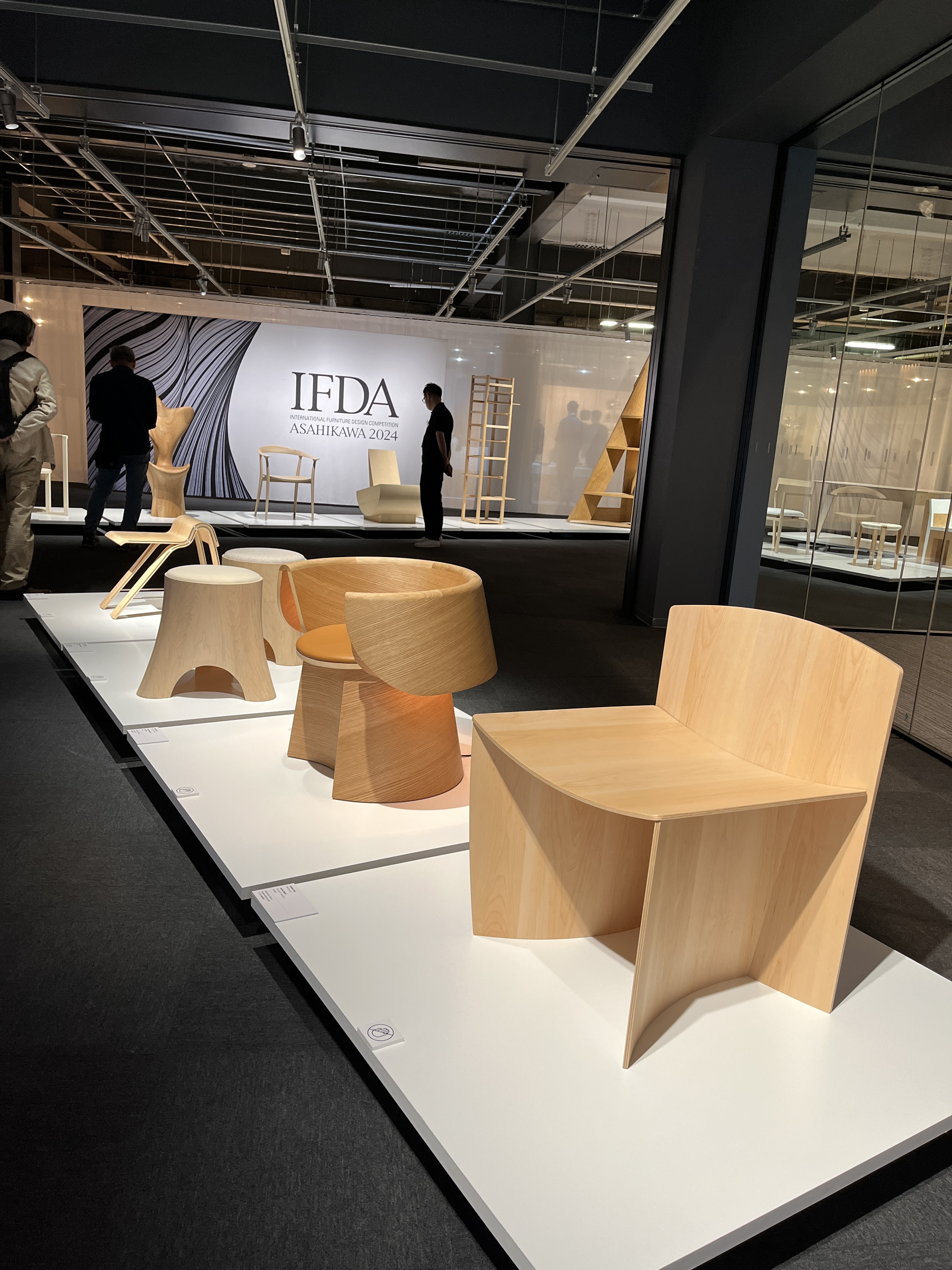 其次,旭川雖然不大,但有六個人才培訓以及林業相關研究機構,所以木產業人才集中,每年也接納來自日本各地的木職人到此學習。此外,旭川周圍豐沛的林業資源提供業者們廉宜且多樣的選擇,這一點我們在此次拜訪的諸多工廠及工坊作業中可以見到,幾乎每一家都以”道產”木材,也就是北海道所生產的木材為行銷主力。連續舉辦三十多年的IFDA也是一個旭川發展家具產業的重要因素,許多國際知名的設計師因這個比賽而知道旭川,旭川的家具產業也得以接觸到國際上的流行趨勢。當然,織田教授完整又重要的收藏也讓家具的學習更容易,可以透過接觸實物,學習家具的結構和乘坐的舒適。