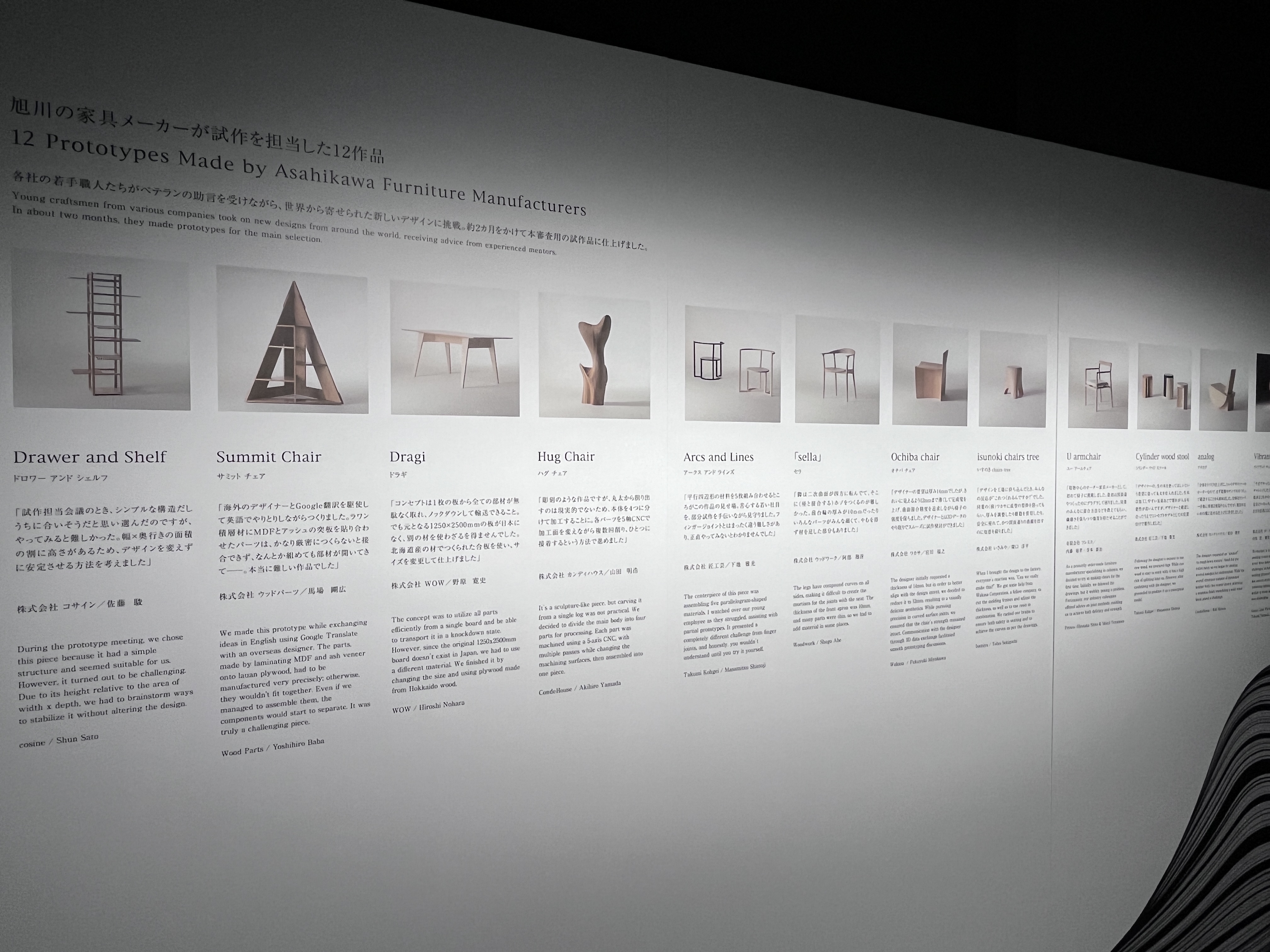 除了旭川的IFDA,從前年開始舉辦的「隈研吾&東川町」KAGU設計比賽今年也進入第3屆,教授說在這麼近的地方有二個比賽是很奇特的,但兩個比賽的屬性很不同。在IFDA你可以看到在設計和製作都非常成熟的作品;而在參展者限制在30歲以下,針對學生為主的KAGU設計比賽,也許作品並不成熟,但會有許多天馬行空的有趣想法。