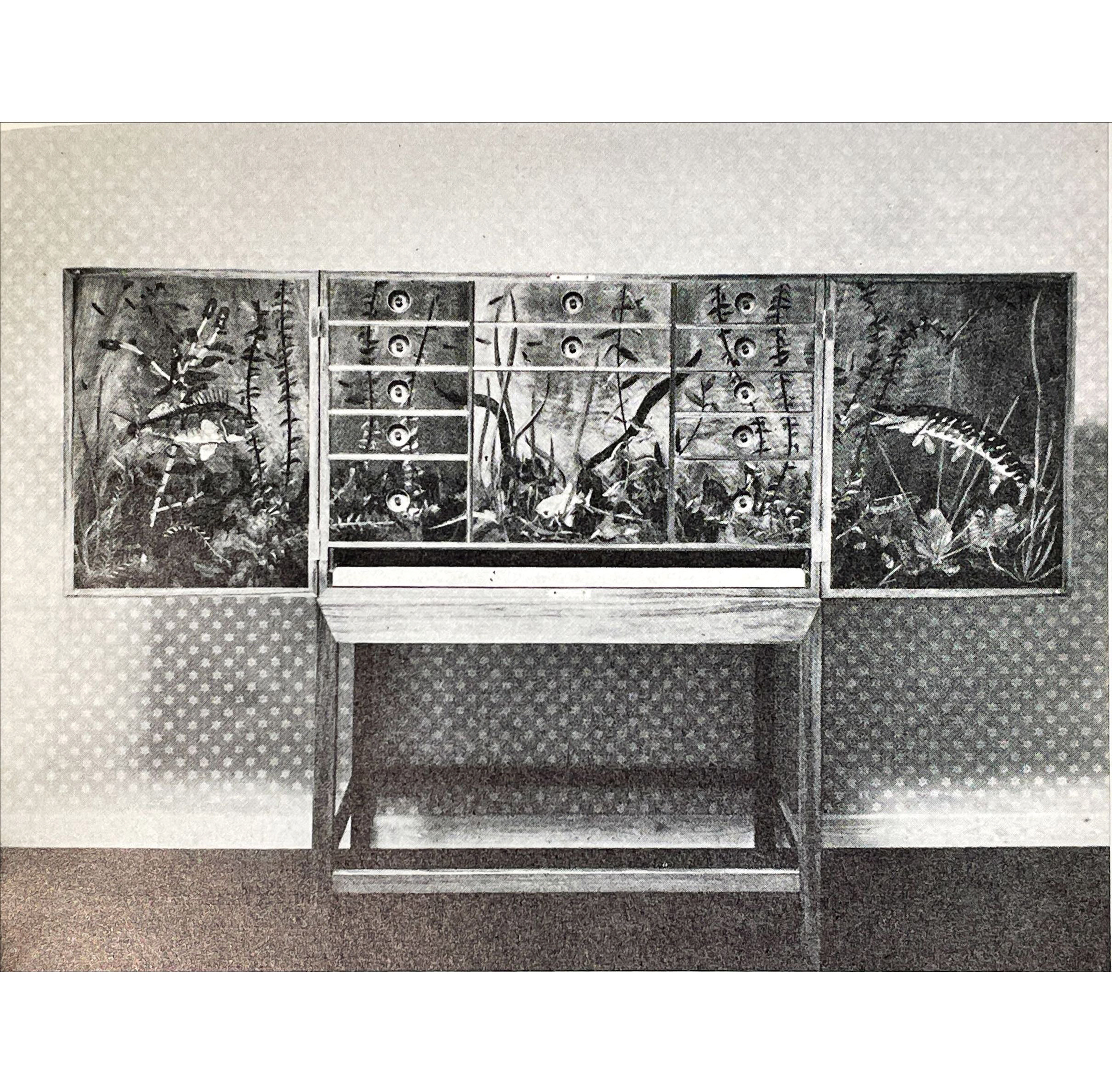 1944年我設計了一個有拼花鑲嵌的櫃子,木匠們跟我說這是不可能做出來的的。然後我用小刀完成了它。這些圖案來自於我童年時在Tønder的河邊看到的蝌蚪、水生植物、鱸魚和昆蟲等。做這件作品不是為了賺錢,而是因為做這件事本身讓我快樂。